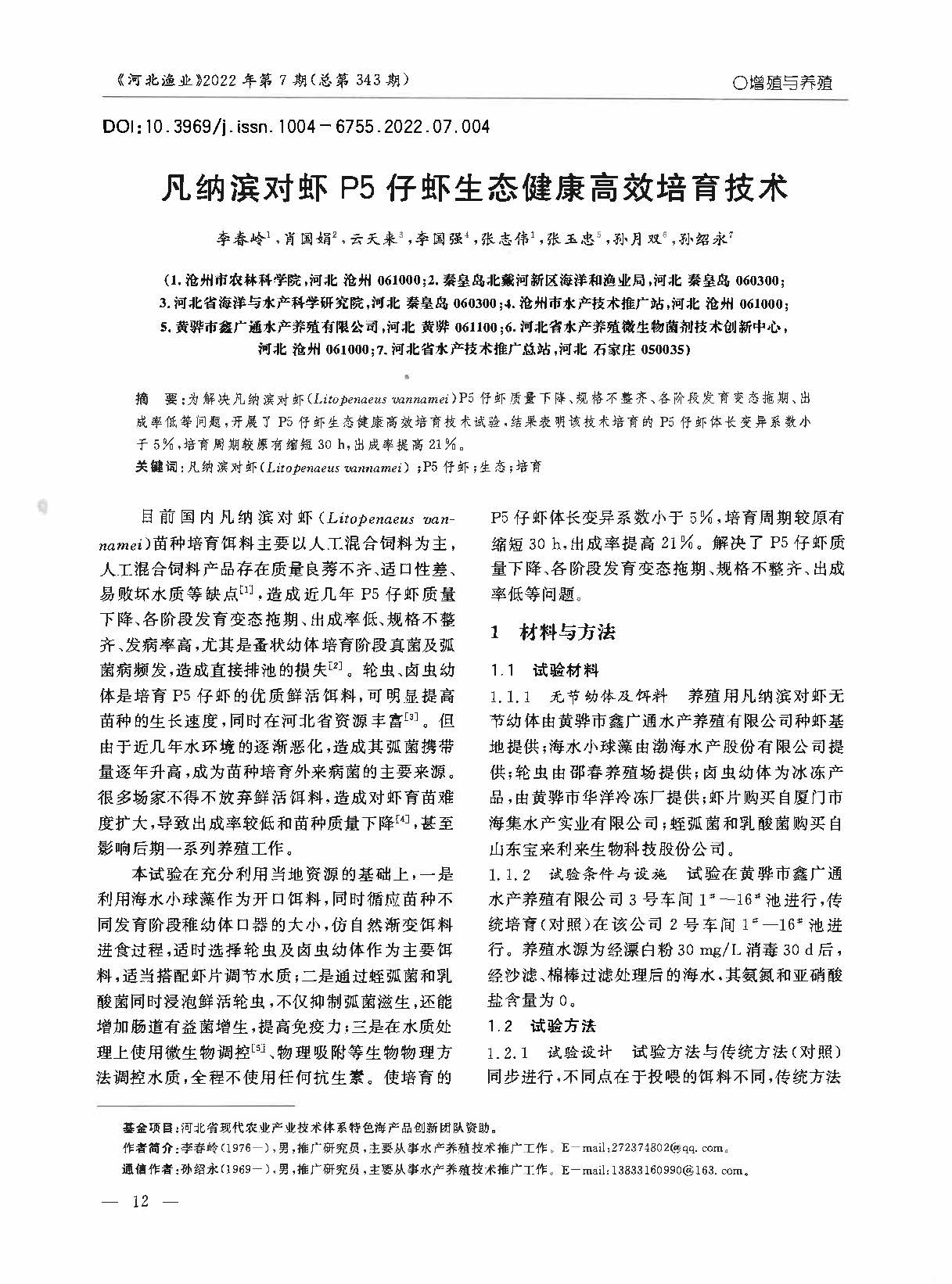 凡纳滨对虾P5仔虾生态健康高效培育技术
