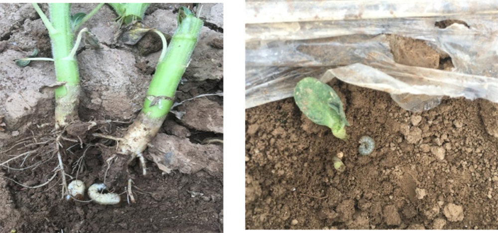 主要有蛴螬、地老虎等。主要危害植株的地下部,咬食根茎部位,地老虎幼虫还为害幼苗的嫩叶、叶心。