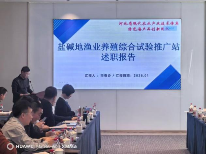 2026年1月8日,2025年度河北省特色海产品团队绩效考评会在河北省石家庄市举行。我院海洋与水产研究所承担盐碱地渔业养殖综合试验推广站工作,站长李春岭研究员及团队成员参加了本次考评会。会上,李春岭研究员代表试验推广站围绕年度任务落实、盐碱水养殖关键技术攻关、产业示范推广、技术服务成效、模式创新、宣传培训以及2026年度工作计划等方面了系统汇报,全面展示了在盐碱地渔业养殖技术集成、品种推广、助农增收等方面取得的突出进展。经过综合评审,盐碱地渔业养殖综合试验推广站凭借扎实的工作成果和显著的示范带动作用,考评中荣获第一得到了专家组的一致认可高度评价。