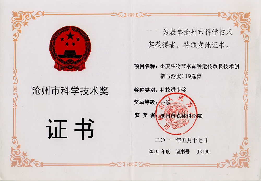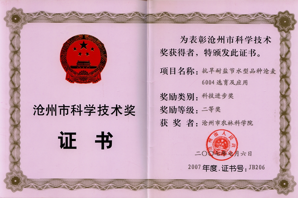 获奖证书