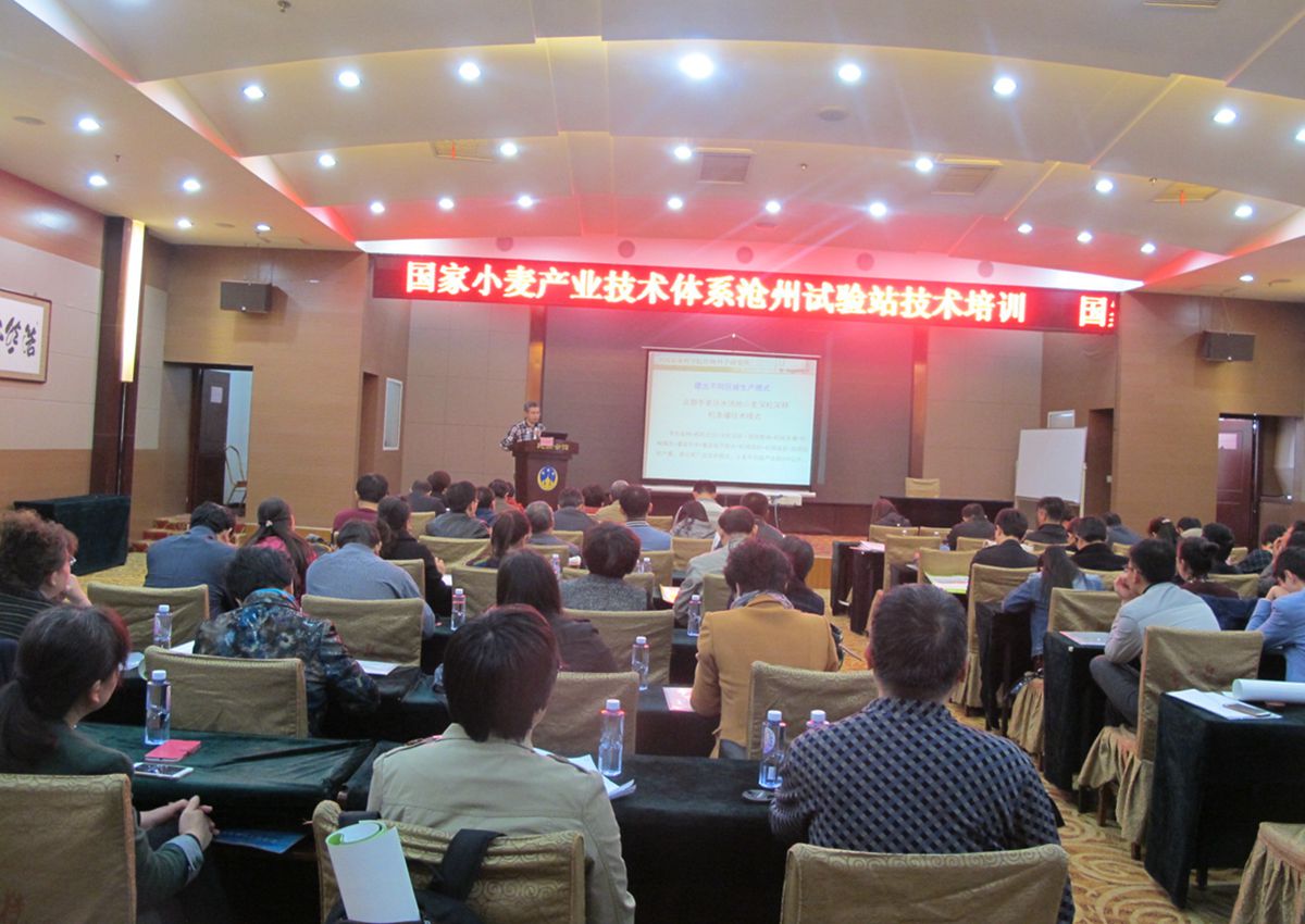 4月7日上午,我院小麦综合试验站在沧州民族会馆组织召开小麦产业技术体系示范县及相关农业科技工作者培训会。中国农业科学研究院作物科学研究所、小麦体系栽培与机械岗位科学家常旭虹博士从我国小麦生产现状、种植生态区划、高产创建技术、绿色高产高效技术、立体匀播技术、病虫草害等6个方面进行了详细讲述;中国农业科学院农田灌溉研究所、小麦体系水分管理岗位科学家段爱旺博士,从小麦灌溉需求、灌溉方式及灌溉节水问题等方面做了精彩的报告。会后常老师、段老师向与会者解答生产中遇到的各种问题,得到与会者的高度赞扬。