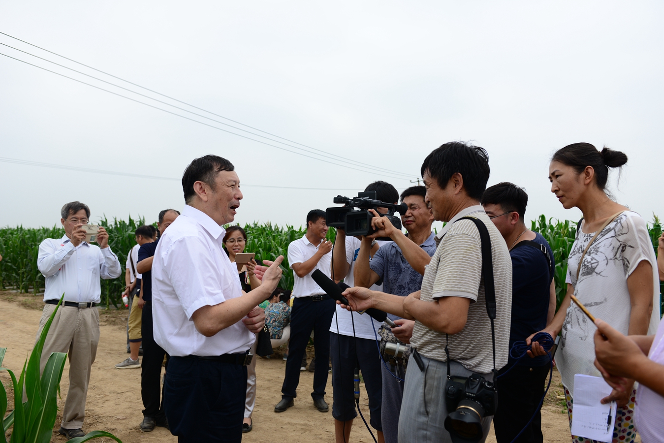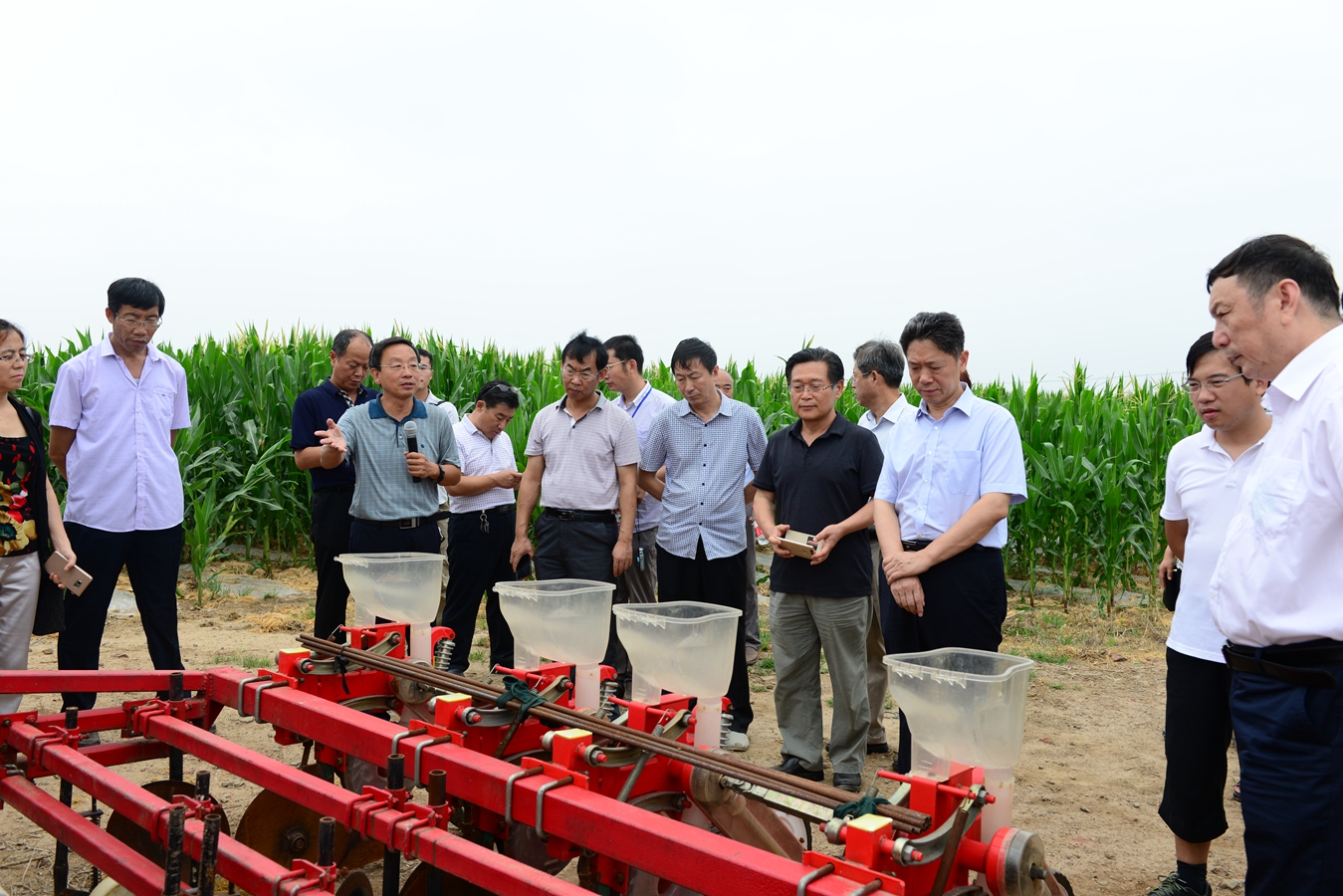 2017年7月19日,由国家农业科技创新联盟、中国农科院农业环境与可持续研究所、河北省农林科学院主办,e77乐彩承办的华北农业节水增效协同创新联盟夏季观摩会在我院泊头市宋八屯村示范基地召开。国家农业科技创新联盟专家、河北省农林科学院院长王慧军教授、中国农科院农业农业环境与可持续发展研究所所长张燕卿研究员、河北省农林科学院副院长王海波研究员以及来自中国农科院作物所、灌溉所、北京市农科院、天津市农科院等多家科研单位的专家领导以及沧州市科技局、沧州职业技术学院、泊头市政府、泊头市科技局、农业局等相关专家70余人参加了观摩。