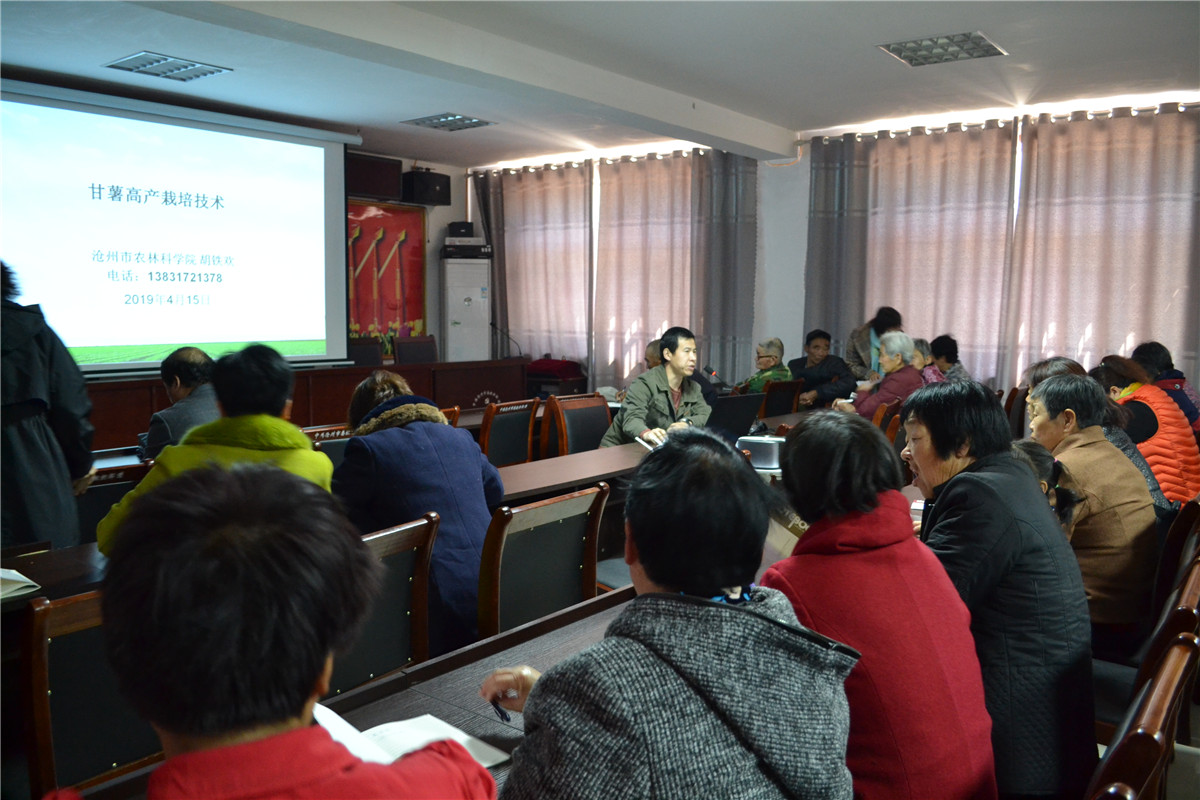 2019年4月15日-16日,应吴桥县农业农村局邀请,沧州市农科院三农服务中心主任席国成带队,和红薯专家胡铁欢、花生专家冯晓洁到于集镇,对有劳动能力的贫困户进行了为期两天的产业扶植专业培训,与会人员100余人。