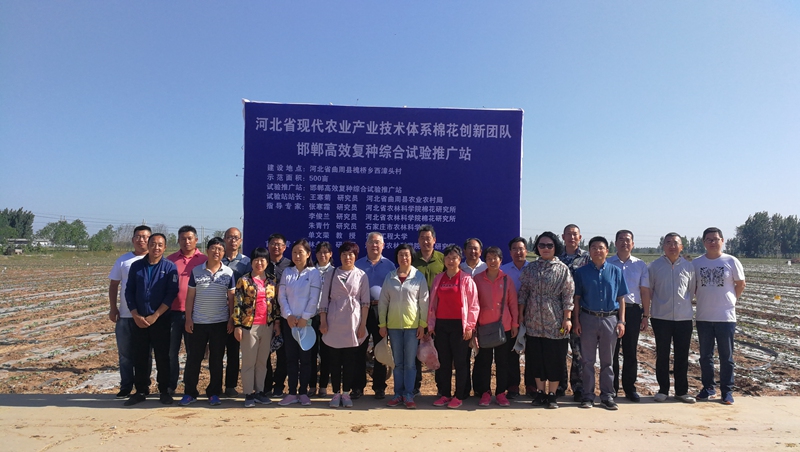 在东光千成纺织示范基地,我院棉花试验站向各位专家介绍了今年试验站基地建设、主推技术、品种示范、种植模式及现阶段工作进展情况,提到了各位专家的一致肯定。