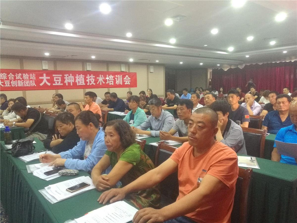 2019年5月24日上午,我院大豆专家曹金锋副研究员及其团队成员到河间进行培训授课。来自河间市的种植大户、家庭农场的110余人参加了培训。曹金锋副研究员为大家分析了当前的大豆形势和国家的相关政策,讲解了《高产大豆种植技术要点》,并针对“结荚不鼓粒”情况,详细讲述了大豆点蜂缘蝽的发生规律及防治方法。
